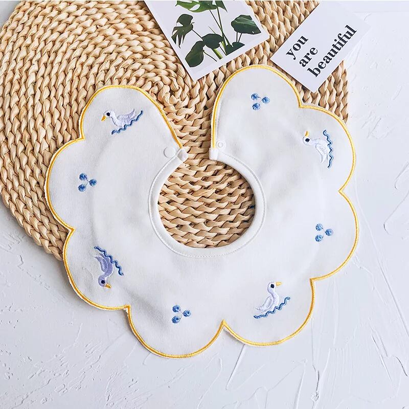 あひる柄と縁取りが刺繍になっているちょっとだけ上品なスタイ。